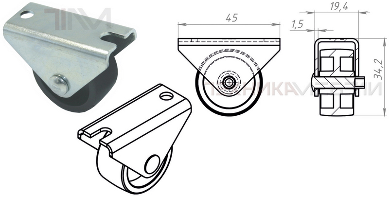 Ролик выкатной h=29 /30 /34 мм, площадка с отв. и вырезом