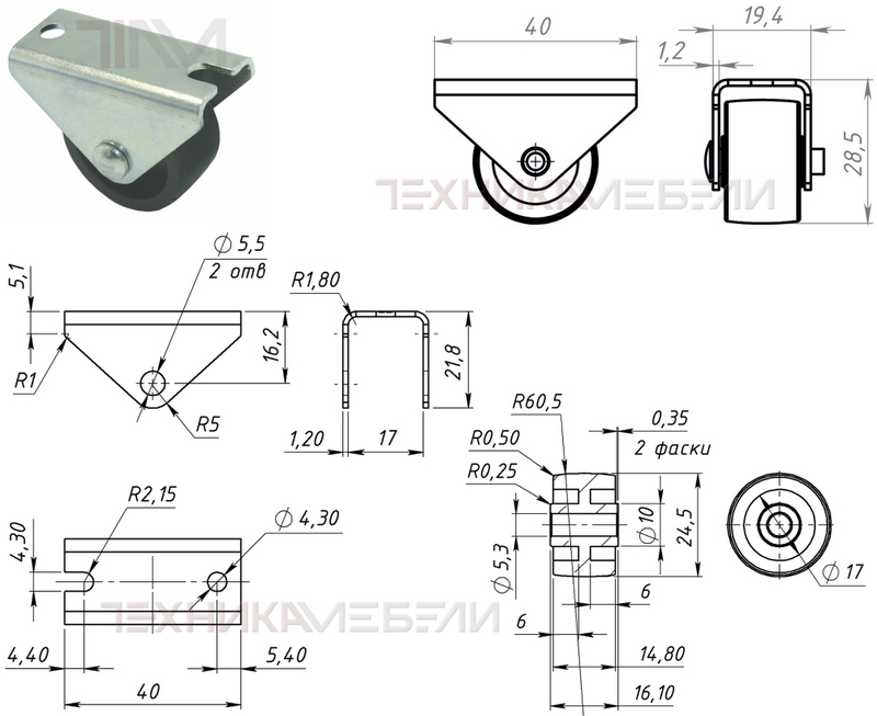 Указан чертеж для размера 30 (Ø 24.5) - возможна поставка ролика с обрезиненным колесом.