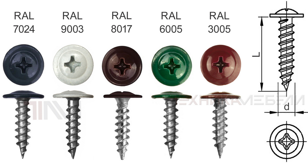 Возможна поставка самореза с окрашенной головкой арт. 160 48 (по RAL)