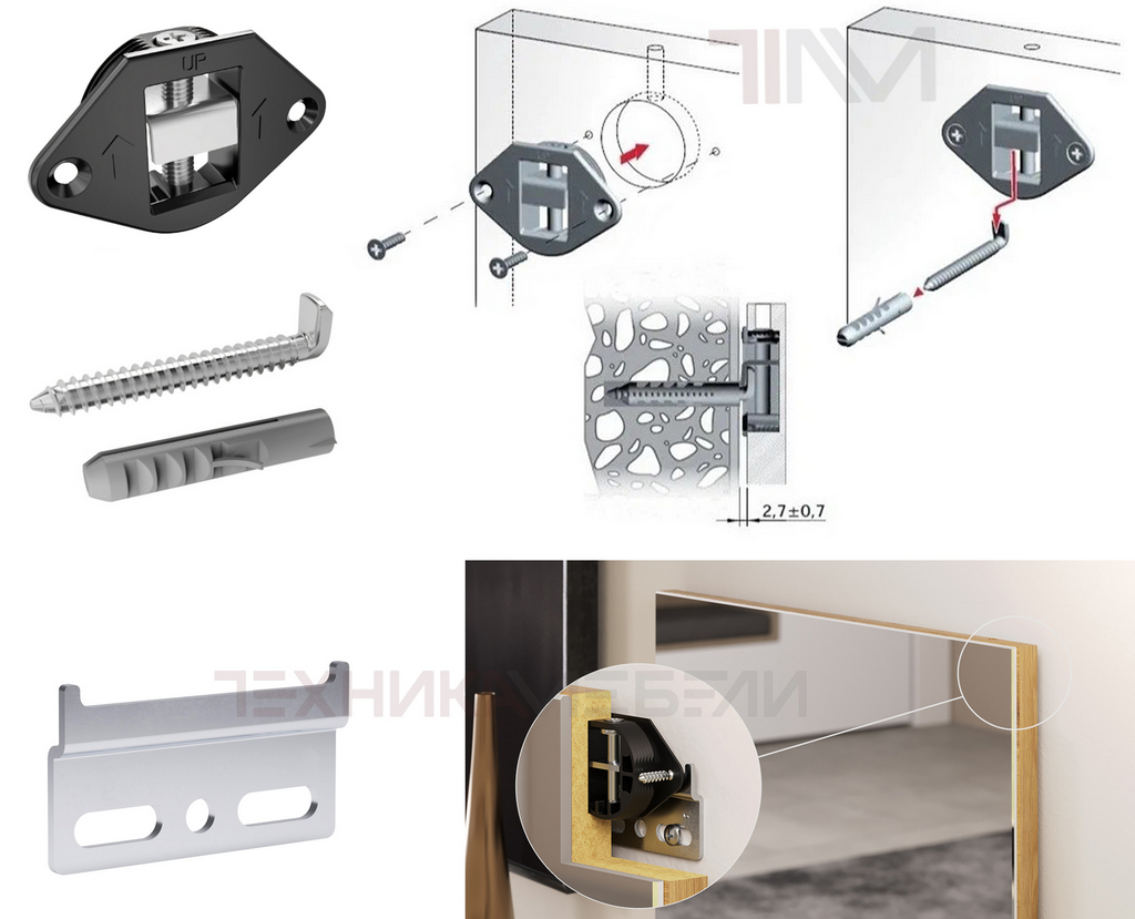 Навеска пластиковая (полиамид PA) с регулировкой по высоте, для навешивания панелей, шкафов, ...