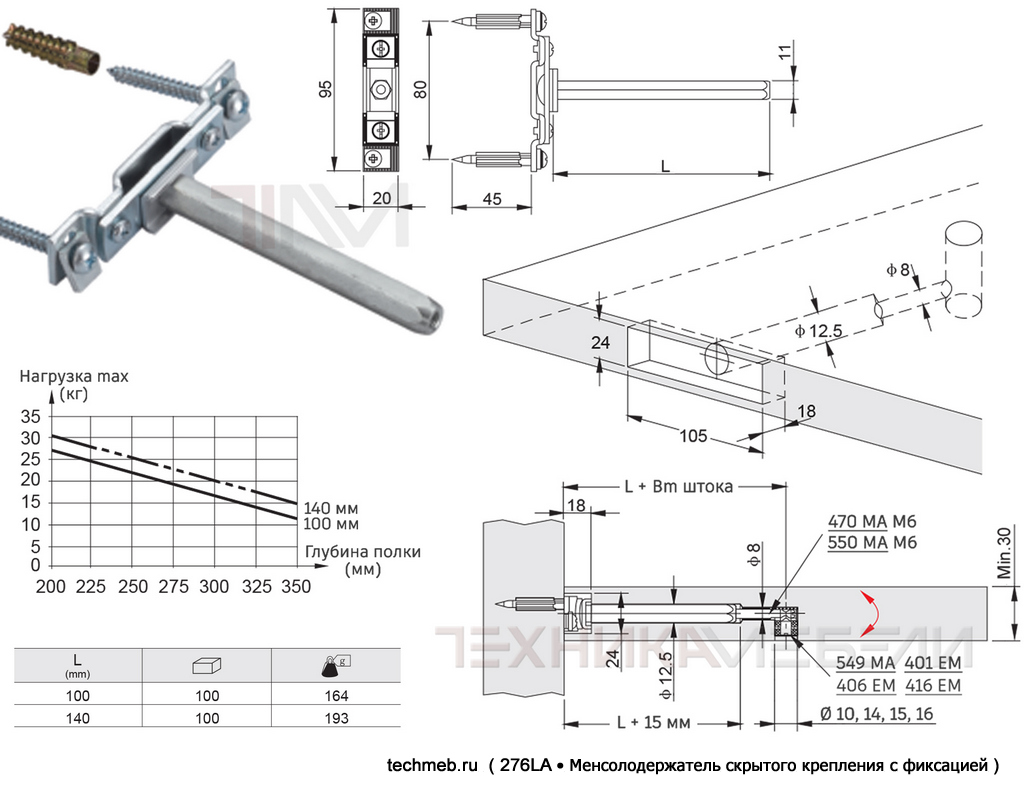 276 LA • Менсолодержатель скрытого крепления с фиксацией